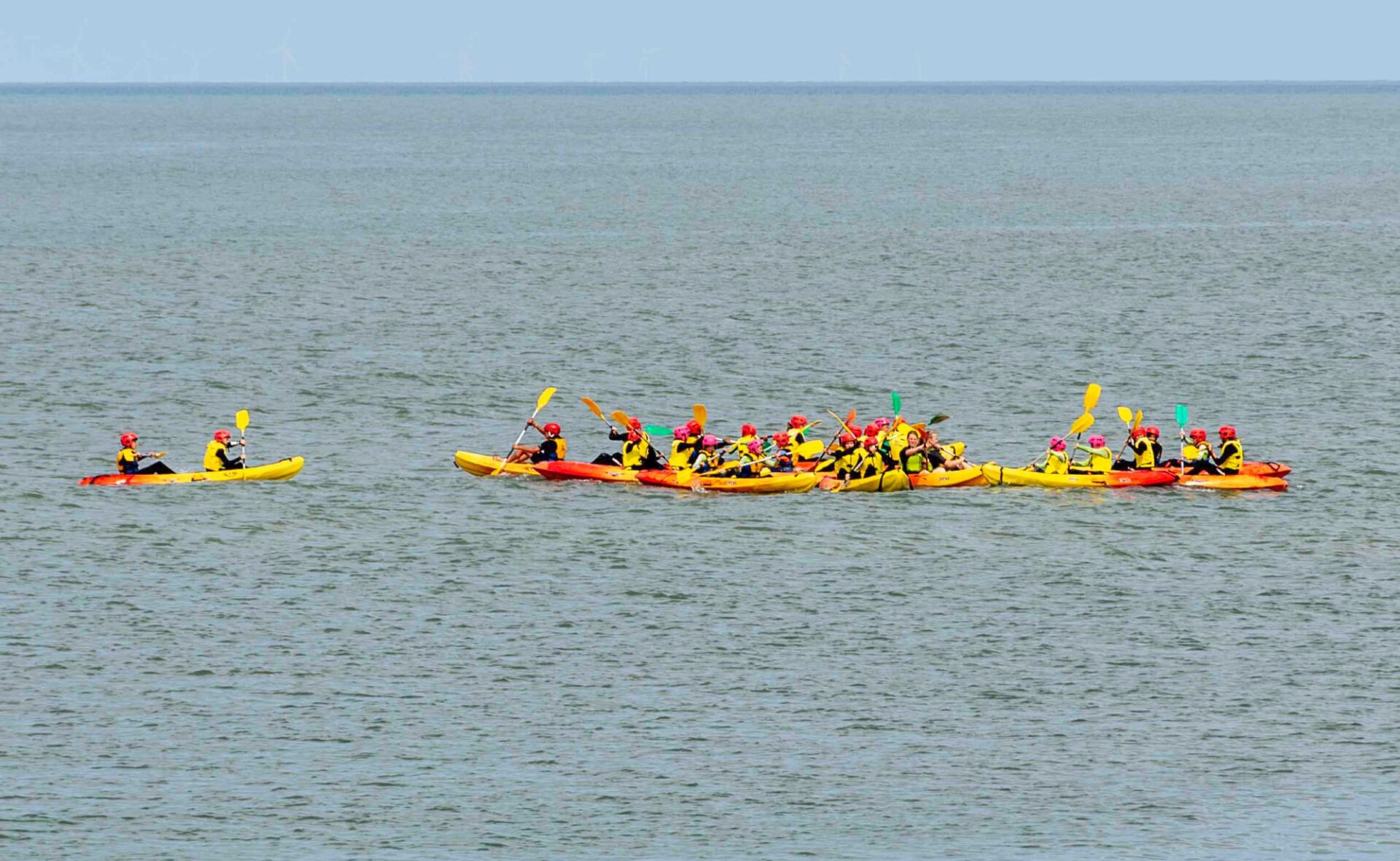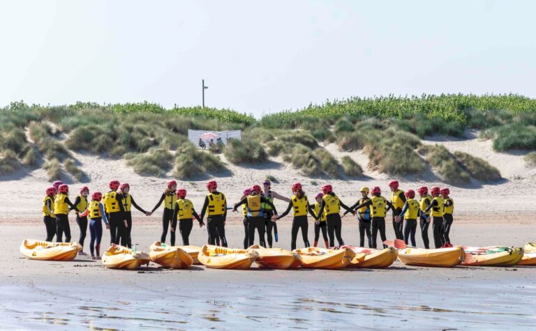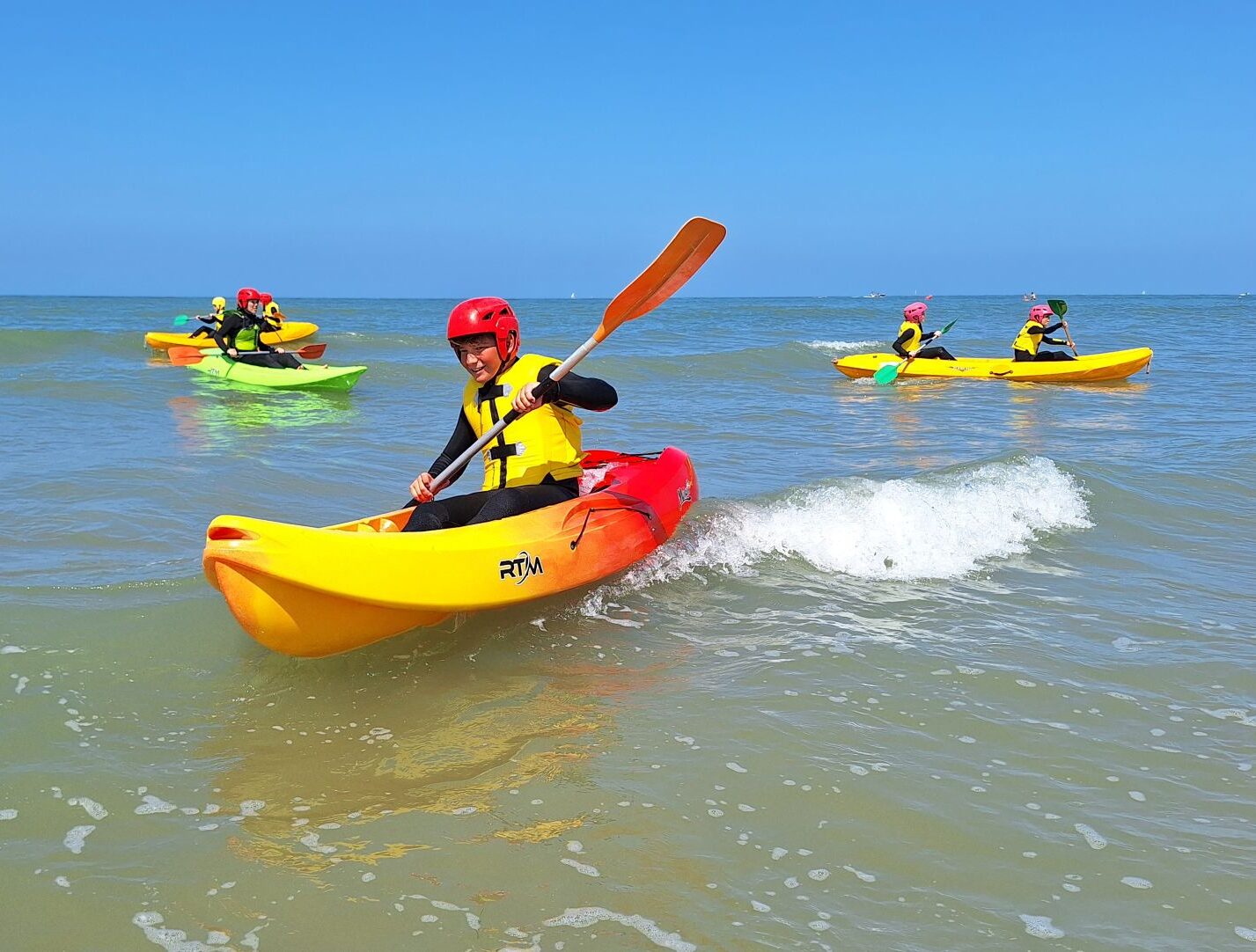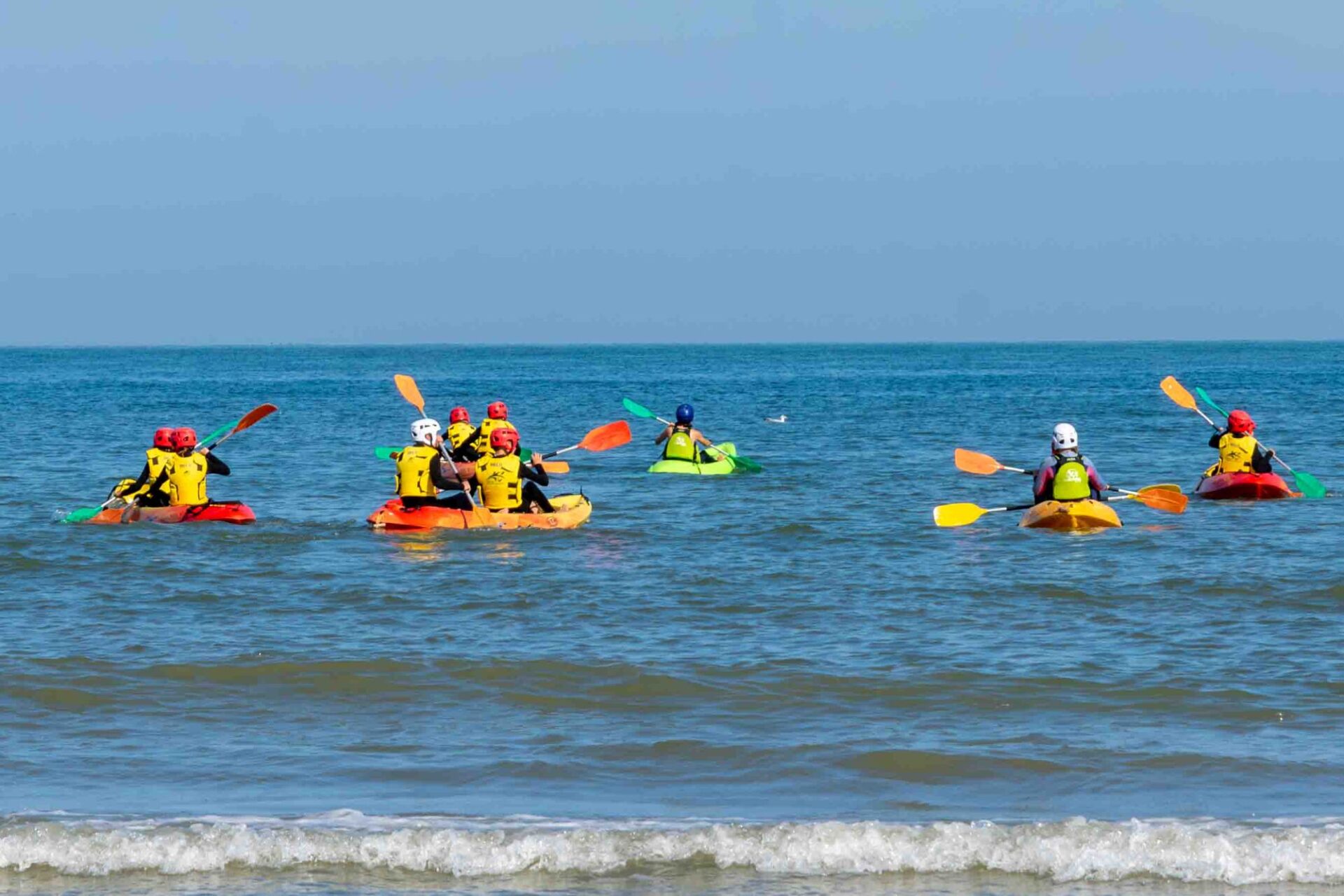 Le kayak de mer se fait tout seul, ou à deux par kayak. Cela devient bien sûr encore plus fun en groupe ! Encouragez-vous pour vaincre les vagues ou improvisez une compétition entre vous pour devenir le premier à vaincre le courant.